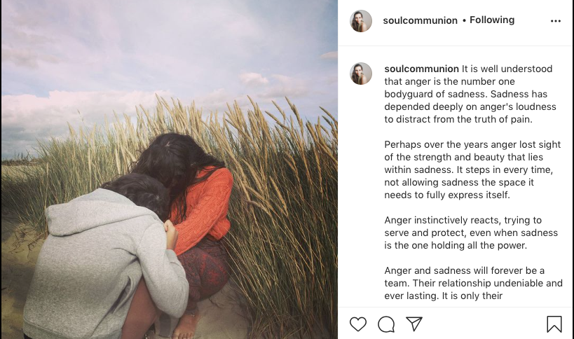Perhaps over the years anger lost sight of the strength and beauty that lies within sadness. It steps in every time, not allowing sadness the space it needs to fully express itself.