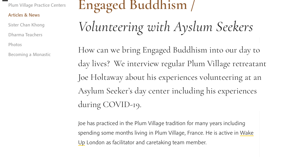 And 2 other sharings this time from within the Plum Village Community, a spiritual tradition I am so fond of. I gave an interview for their website recently about my work with people seeking asylum and later in the month was on a panel talking about the notion of the term reverence for life. which I decided to do through mistake stories, times where I had an idea of how to be in situations and life showed me otherwise.