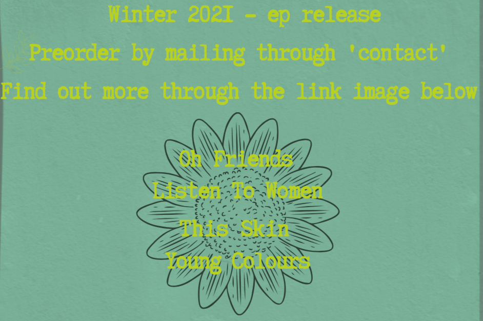 The ep features a family of wonderful friends (and family -my mum and step dad feature, melodian and violins) along with the wonderful late and ever present Naomi Haigh on cello, Monica Max West on piano, Martha Wright on clarinet, Will Saunders and Seth Roberts on electric guitars and Tim Monkey on drums. Also involved were the voices of a choir of friends on Listen To Women – to be named including Manu Farenzena who was on my last record and my friend the Jazz singer Melissa James.