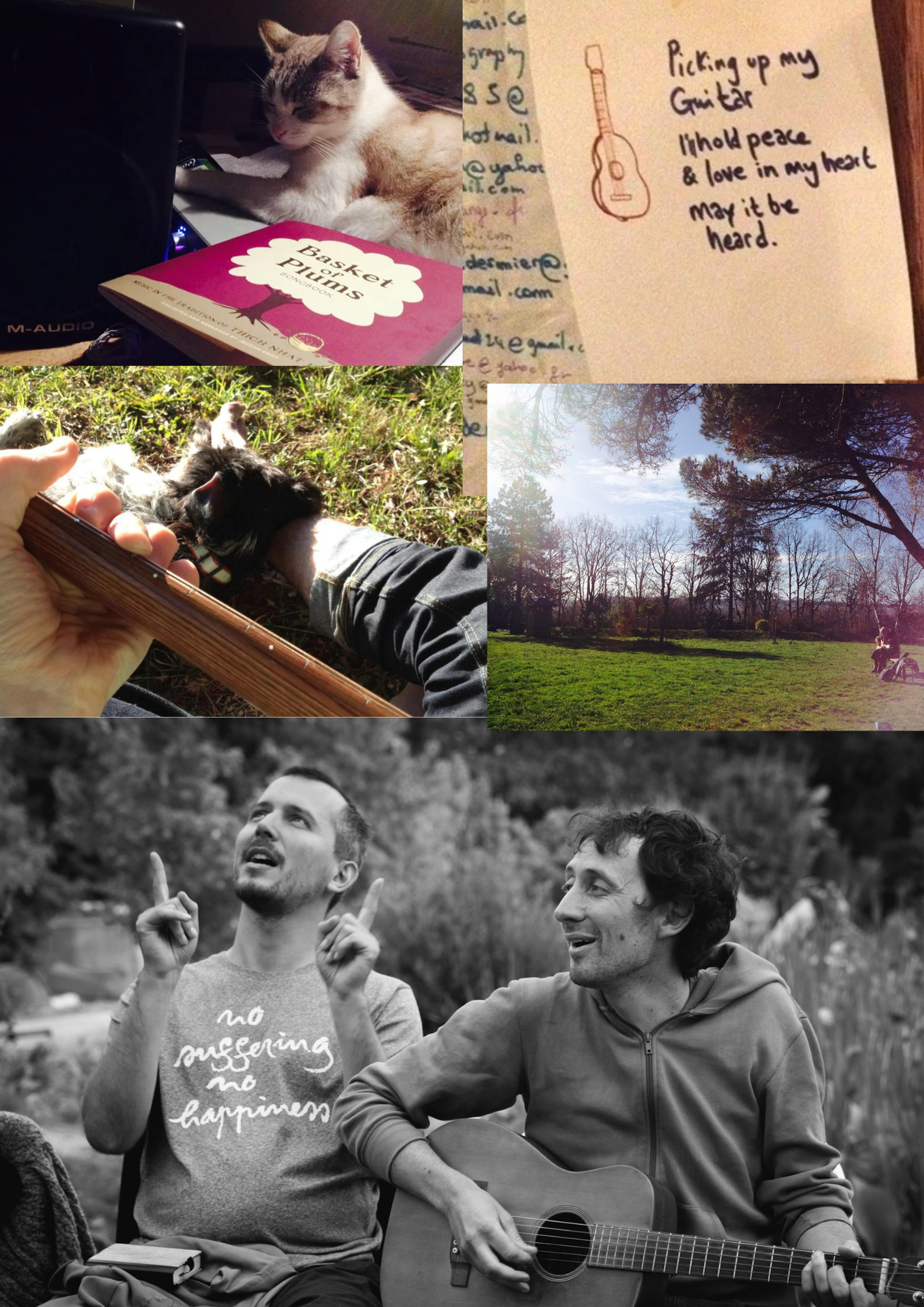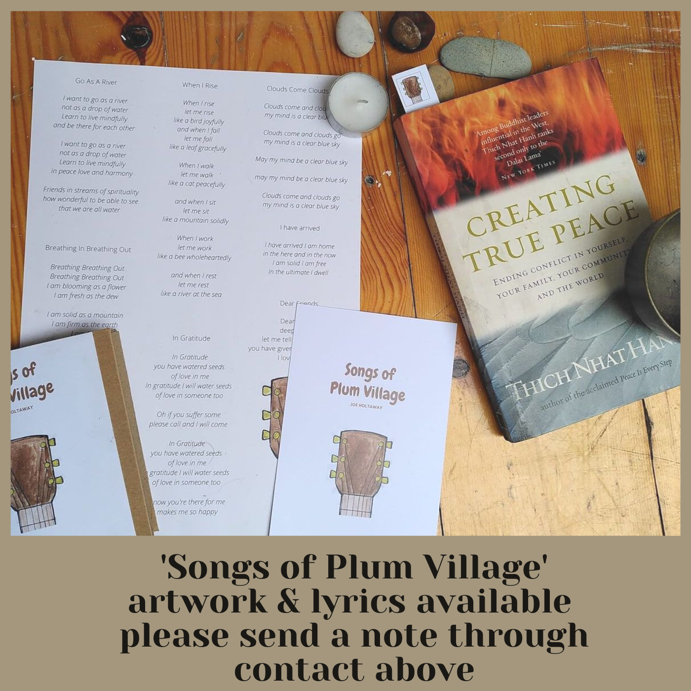 Thank you for picking up this record. It came to be when I recorded half an hour of Plum Village songs to contribute to a film project being made by some friends about the village. I didn’t think more about it until ‘When I Rise’ was used on a little instagram video of the new PV Hoodies and T-Shirts; I had a few messages about the song and then found and listened back to the others and felt, yes, ok, I’ll put them together as a little album, so thank you for the encouragement those who messaged!