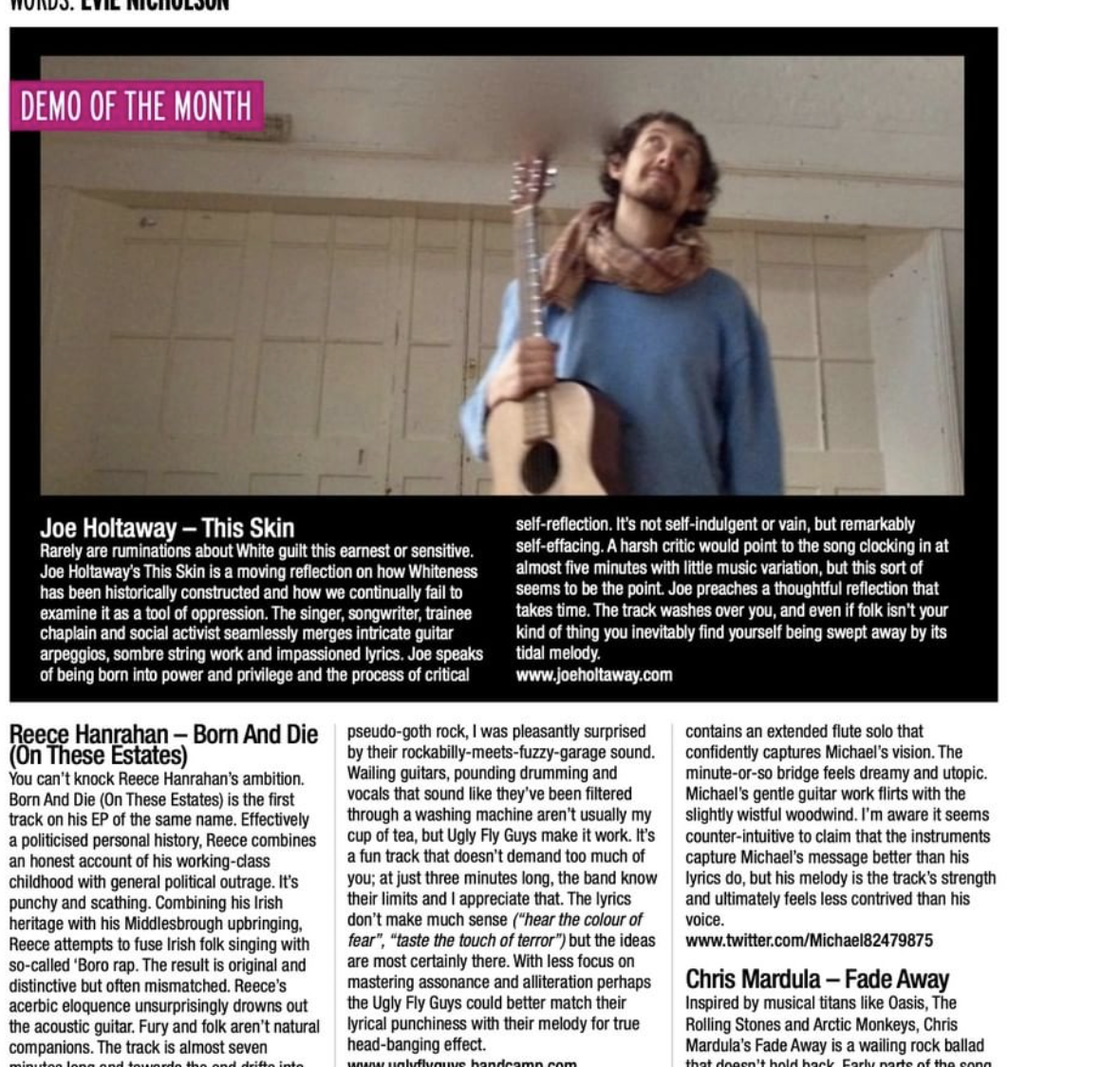 Lastly almost my thanks to Narc Magazine , BBC Introducing and Mr Foxx’s Frequency for giving some love to my latest ep; making This Skin, demo of the month, playing Oh Friends on air and play listing Listen To Women on Youtube – recommend any songwriters to look them all up for promoting new music in their generous way.