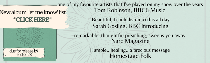 This year will also see the release of my next album, the second LP of my own songs. Some lovely reviews here from early versions of the songs. Thank you for your support so far. My hope is that the record will bring conversations up around the songs themes: from LGBTQAI2S+ to Environmental peaceful protest and from Whiteness and Racism to the wisdom of Women and more… There’s a pre-order page on the site you can find clicking here and there’s a Crowdfunded here to go toward my recording and traveling fund. This record had been funded by the sale of the last one and I hope to continue in this way.