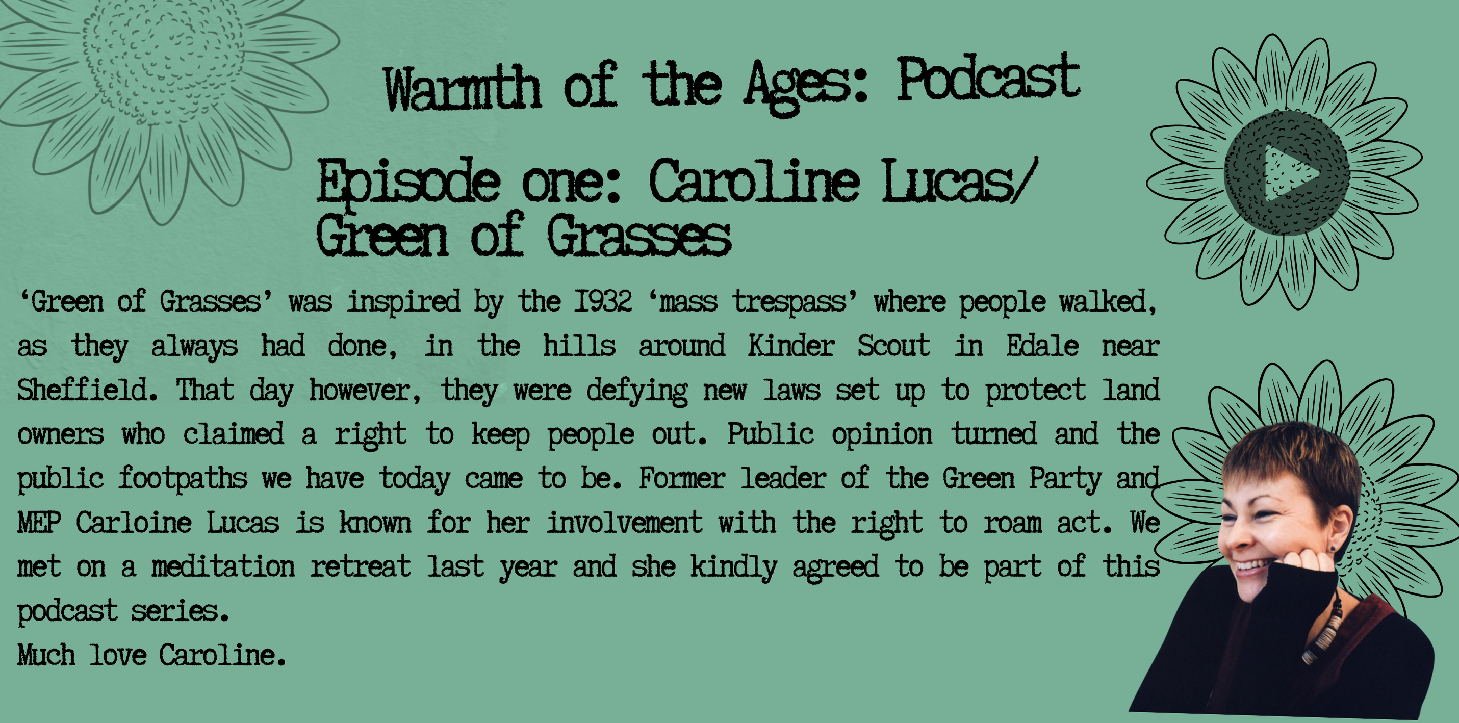 Episode 1 is with former Green Party leader, MEP and author Caroline Lucas. Hear our conversation here and pick up the record to receive the other episodes.