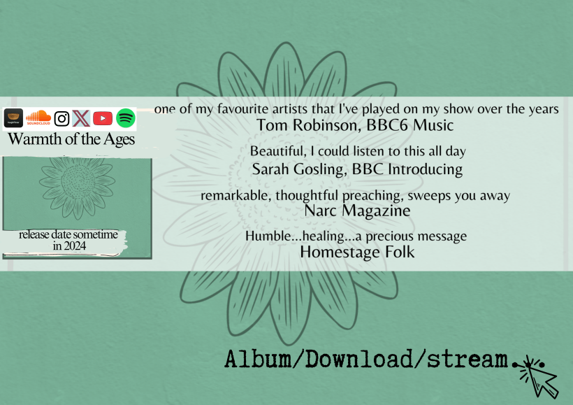 Thanks to all who have listened to and shared Warmth of the Ages so far- a few shout outs here, Okay Alright, Narc Magazine, Daily Dose of Indie, BBC Introducing, Home Stage Folk, Brum Radio, KOWS FM