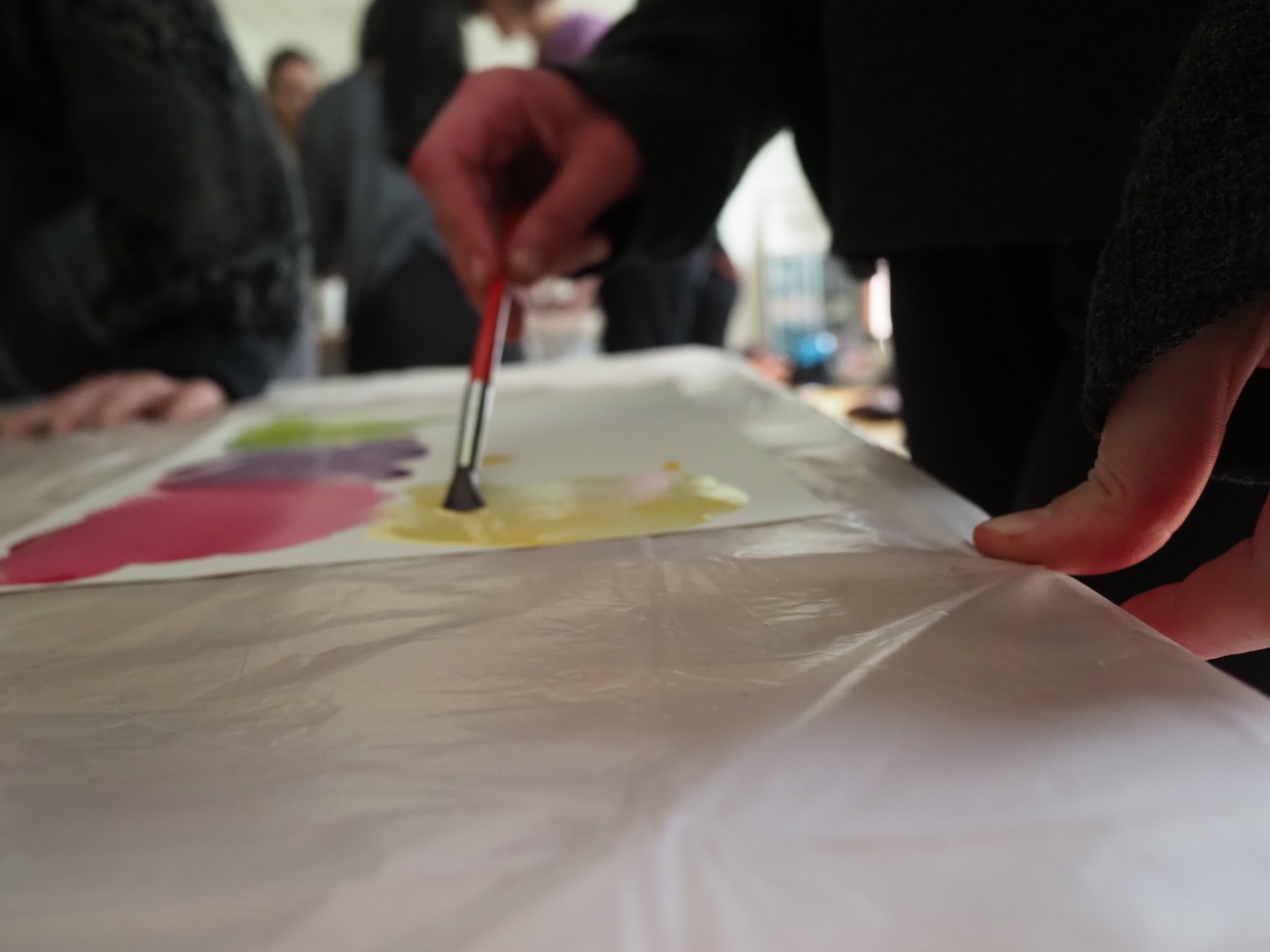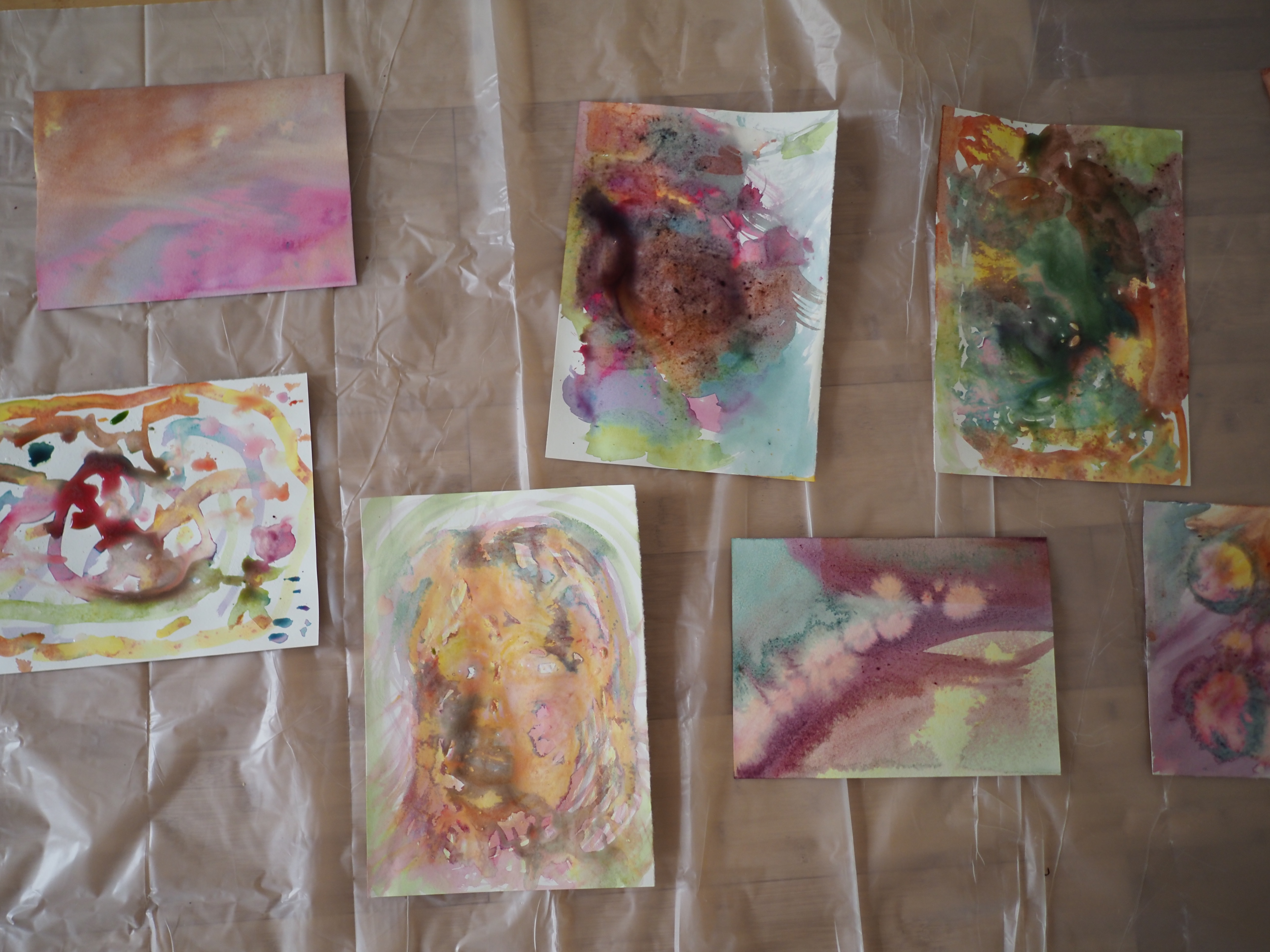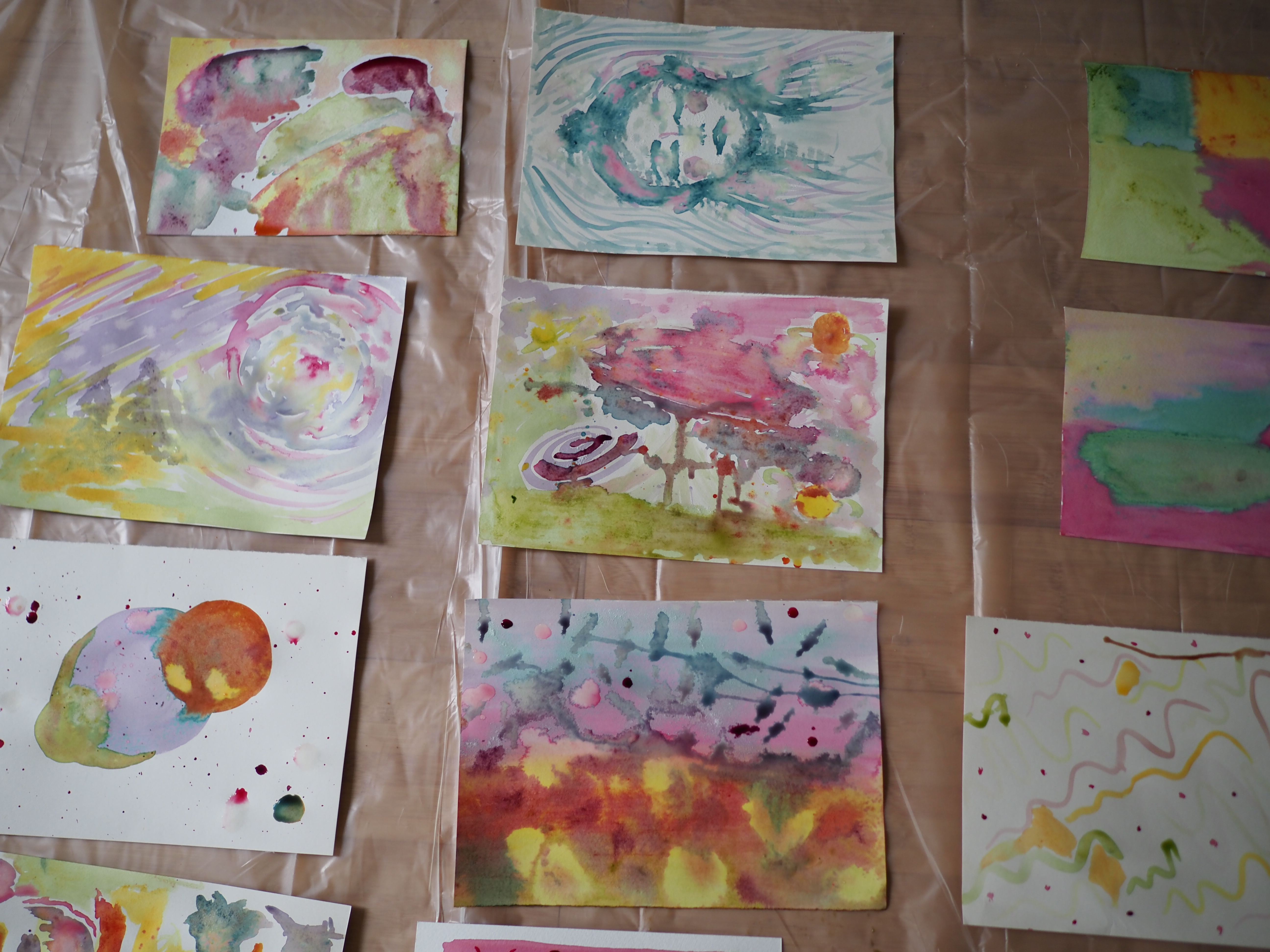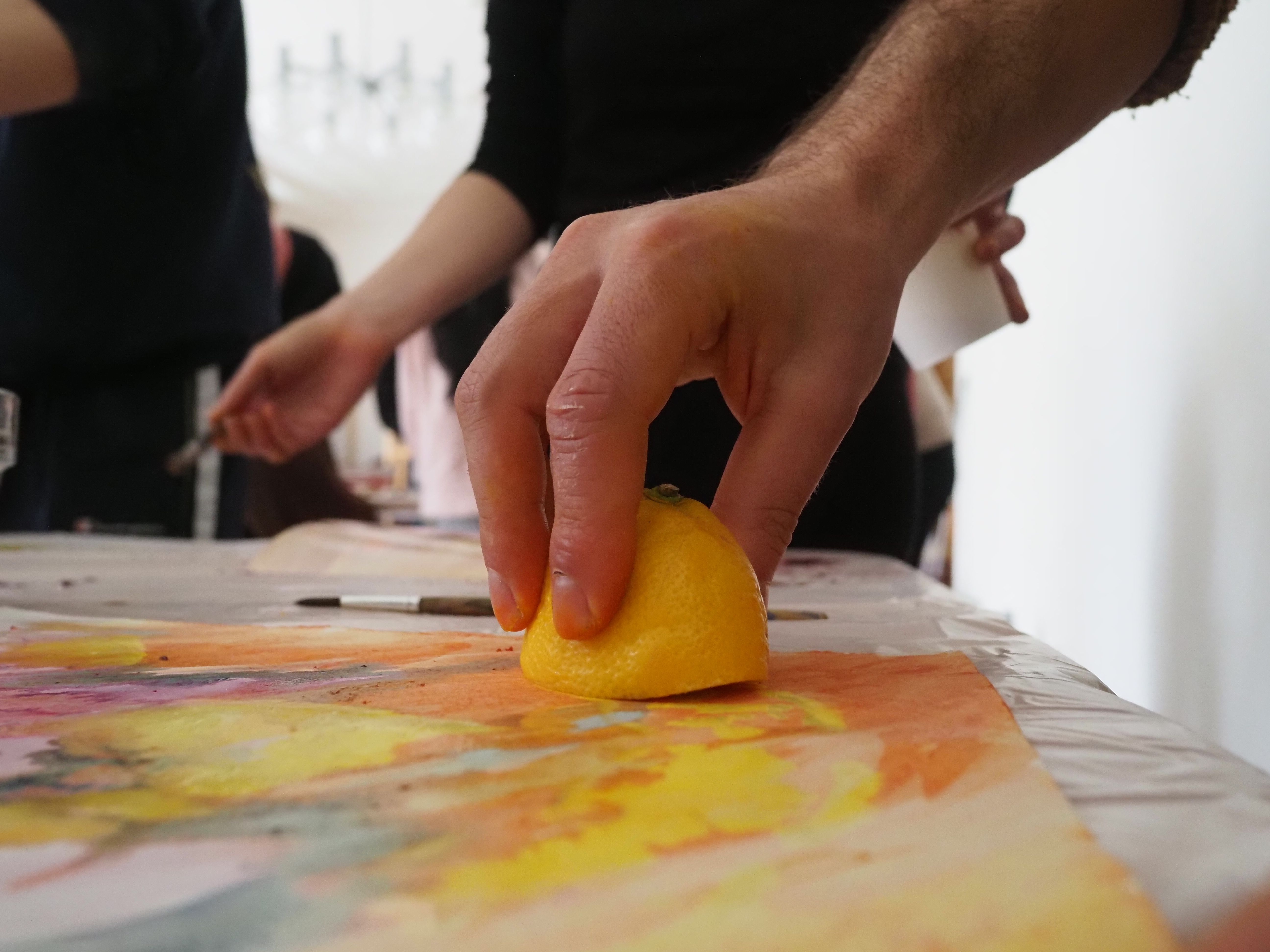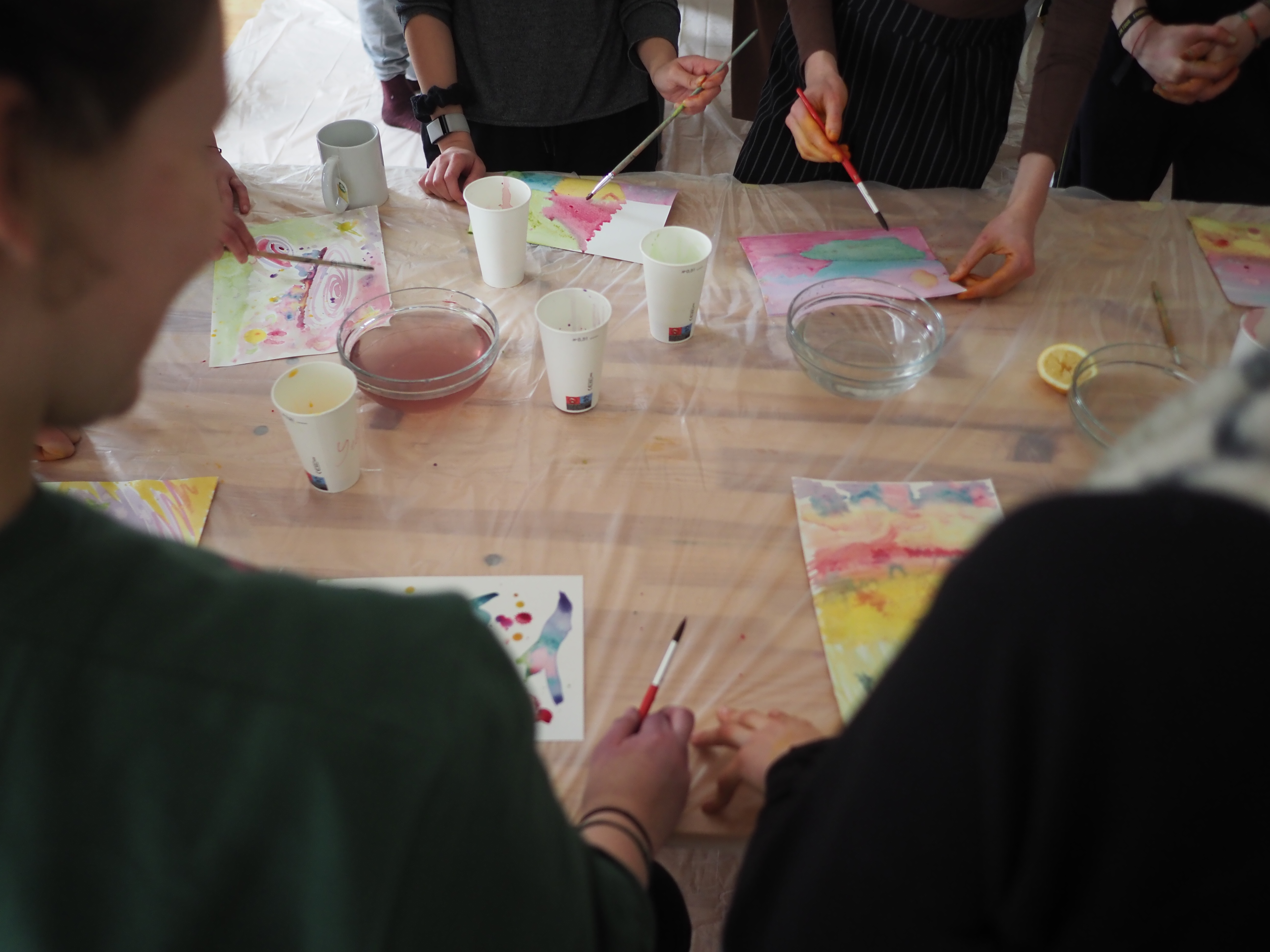You can use these colors directly on paper — each one has its own scent, texture, and brightness. They’re beautiful on their own and even more fun when you start mixing them together. Have fun experimenting and enjoying the process! (The photo shows a moment from one of our retreats, where we played together with the plant colors..)
