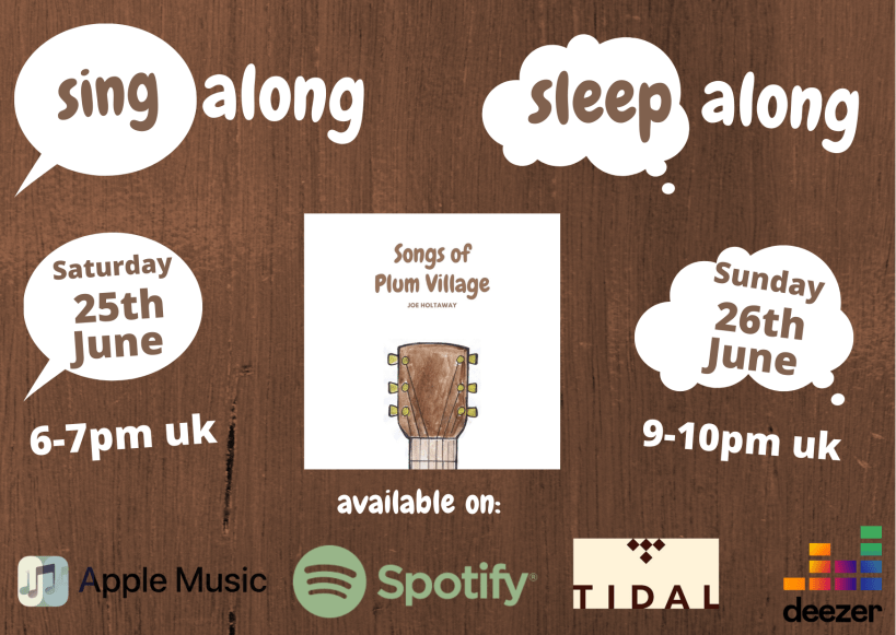 Thank you all that came over the weekend to the listening parties for Songs of Plum Village - here's the evening streamed and the slides we looked at - from 2020's Winter Warmer festival... https://soundcloud.com/joe_holtaway/songs-of-plum-village-listening-party/s-iGKYJYoAhIa?utm_source=clipboard&utm_medium=text&utm_campaign=social_sharing You'll find your song sheets at the foot of the page if you like to use them - please screen [...]