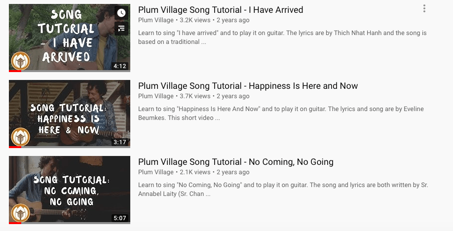 Another project we did at Plum Village was to record some tutorial videos for some of the well loved Plum Village songs, if you search ‘Joe Holtaway’ here they will come up theres 10 of them.