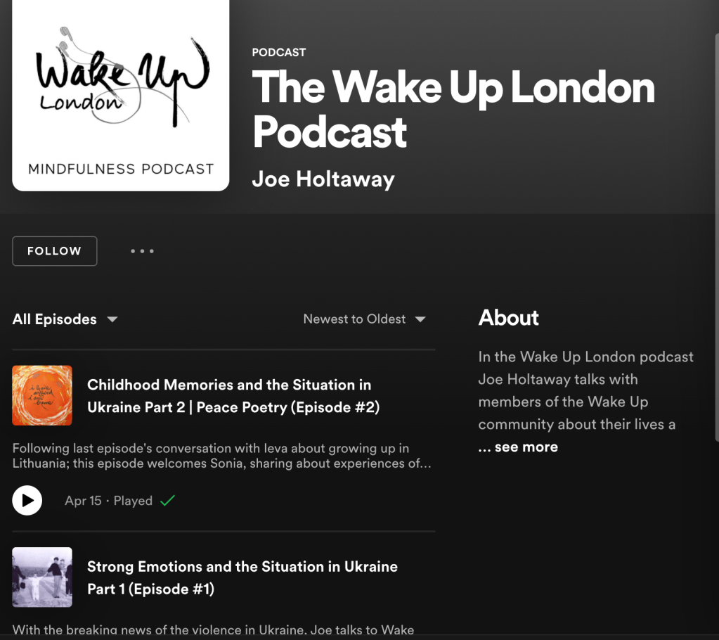 2022 saw the launch of The Wake Up London Podcast, from the young adults community of Plum Village that I’ve been a part since 2011. Episodes continue into 2023
